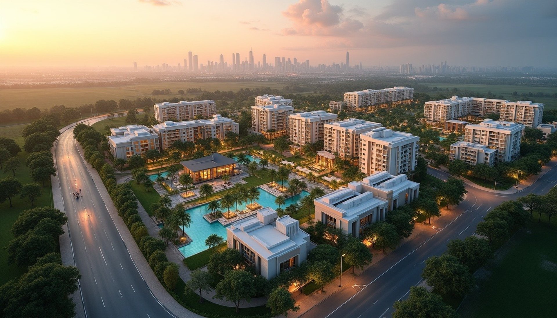 Development of premium residential plots, villas, apartments, commercial hubs, retail spaces, and industrial/logistics zones.
